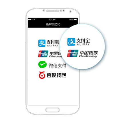 触福支付,为iOS/Android原生/H5 App提供支付解决方案:支持微信支付、支付宝支付、银联手机支付、百度钱包等。